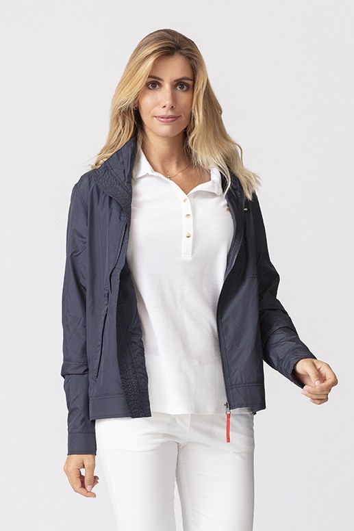 Zipped windbreaker, with integrated hood. Light and comfortable to wear. Deperlant. Color navy blue. Sizes from XS to 3XL. Unisex model.
