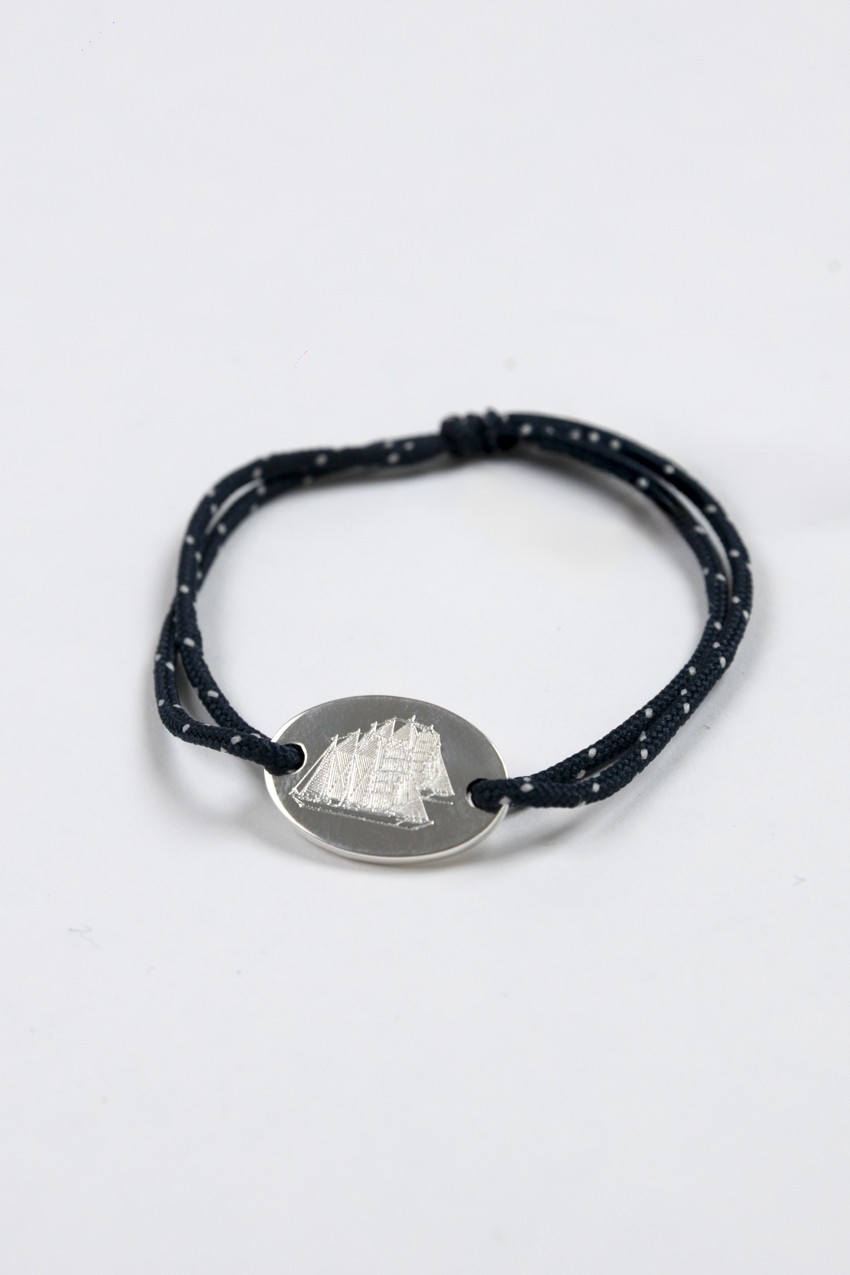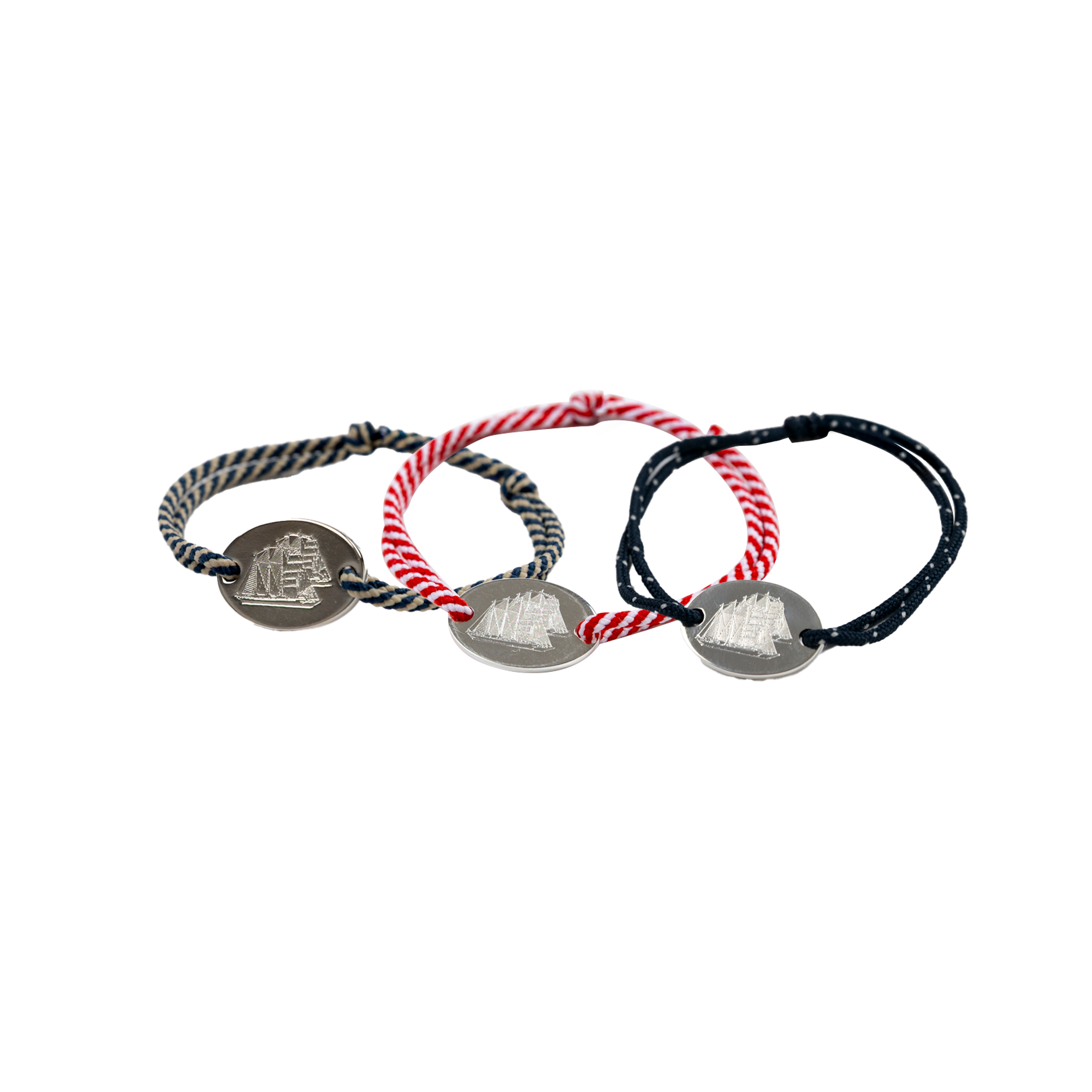 Star Clippers bracelet made from silver-tone metal (anti-allergy) and a nylon braided cord made from recycled fishing nets, contributing to ocean protection.