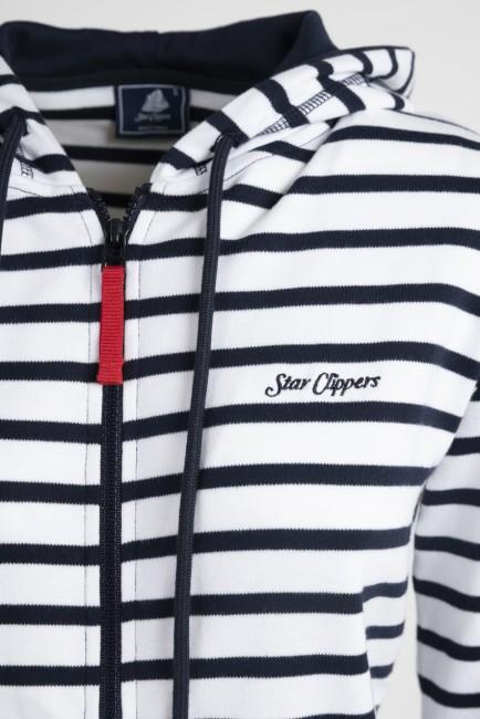 Hooded jogging vest 100% cotton elastane with marine stripes. Sizes from S to 3XL.