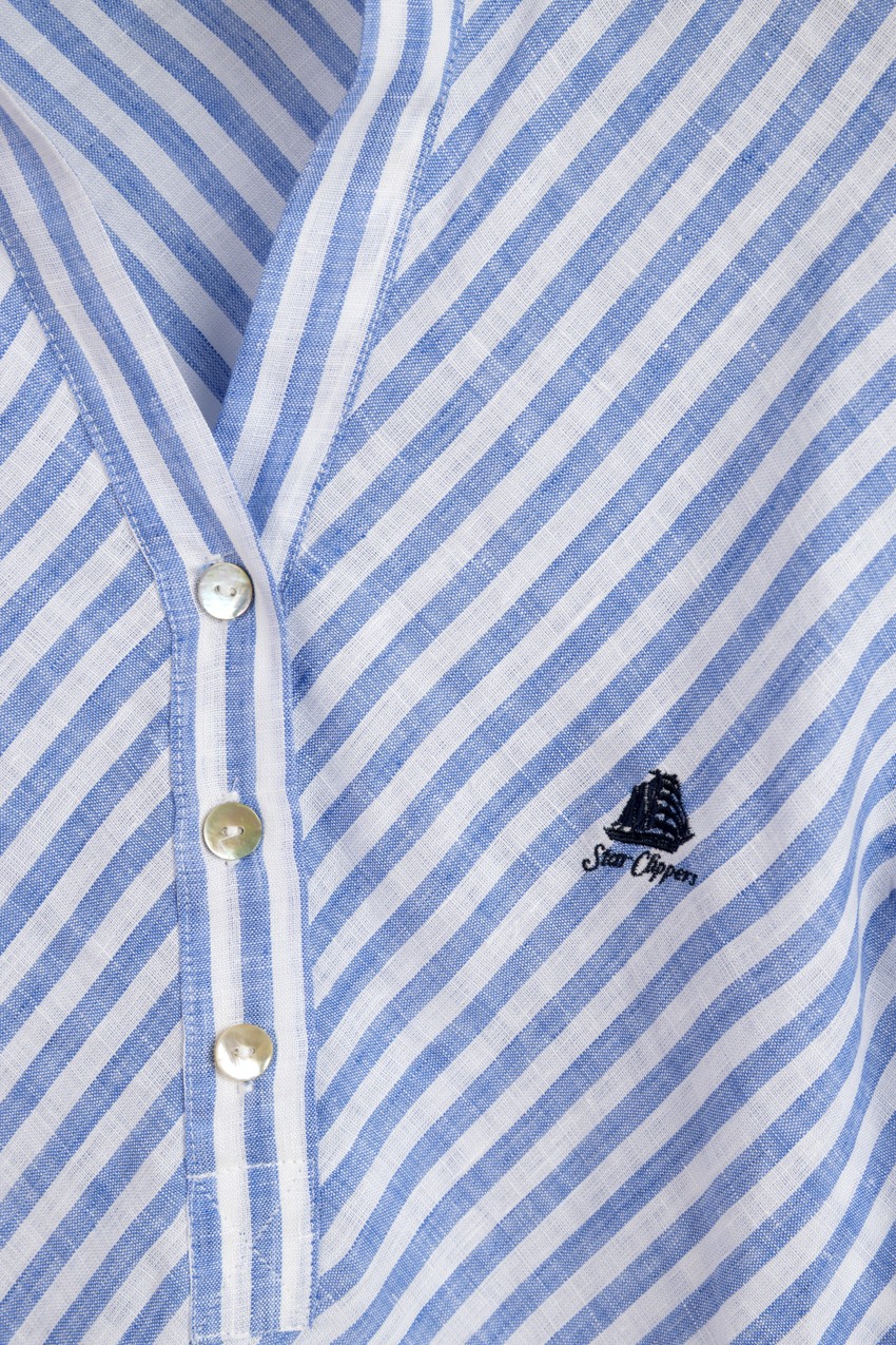 Women’s striped pop-over shirt in 100% linen, sizes from S to 3XL.