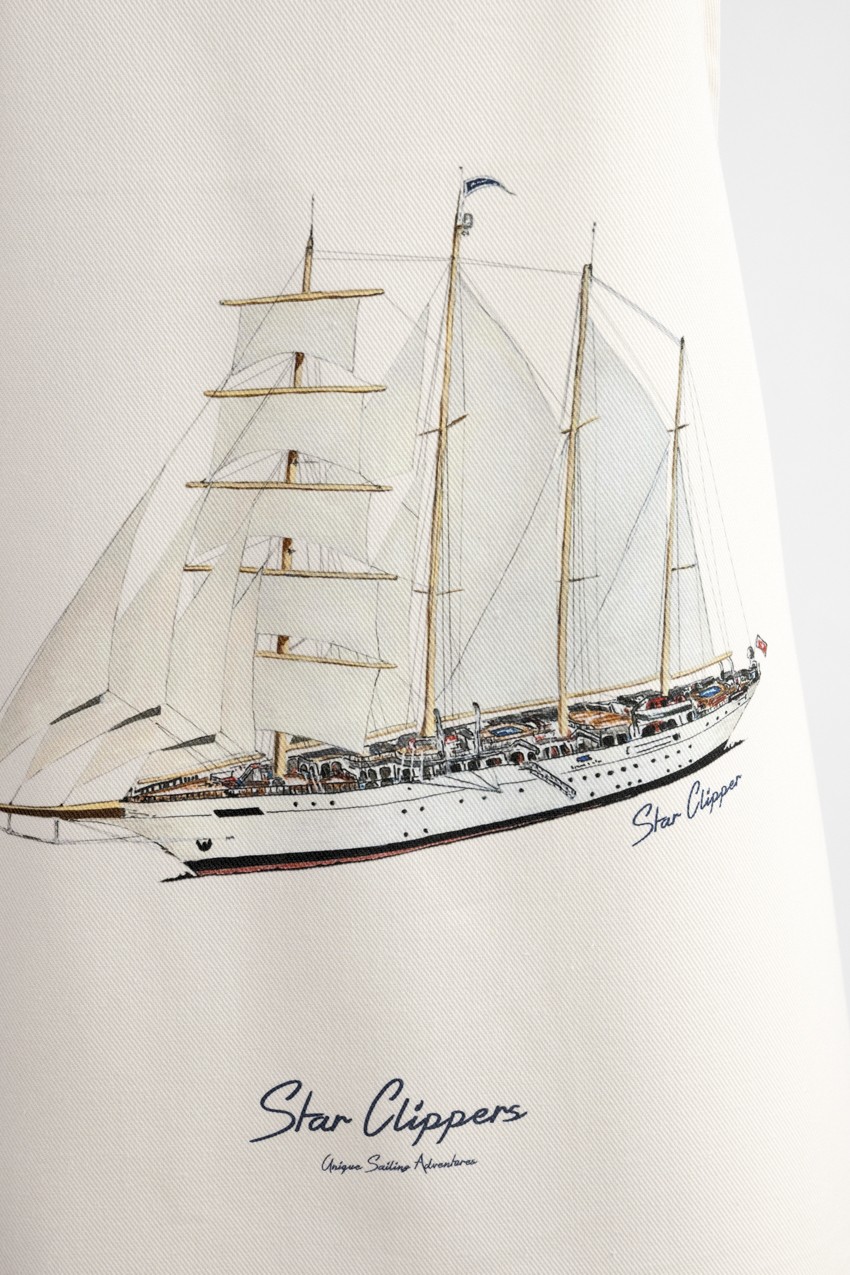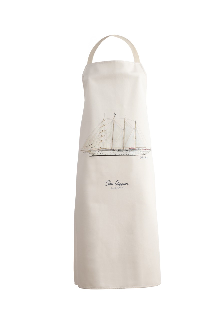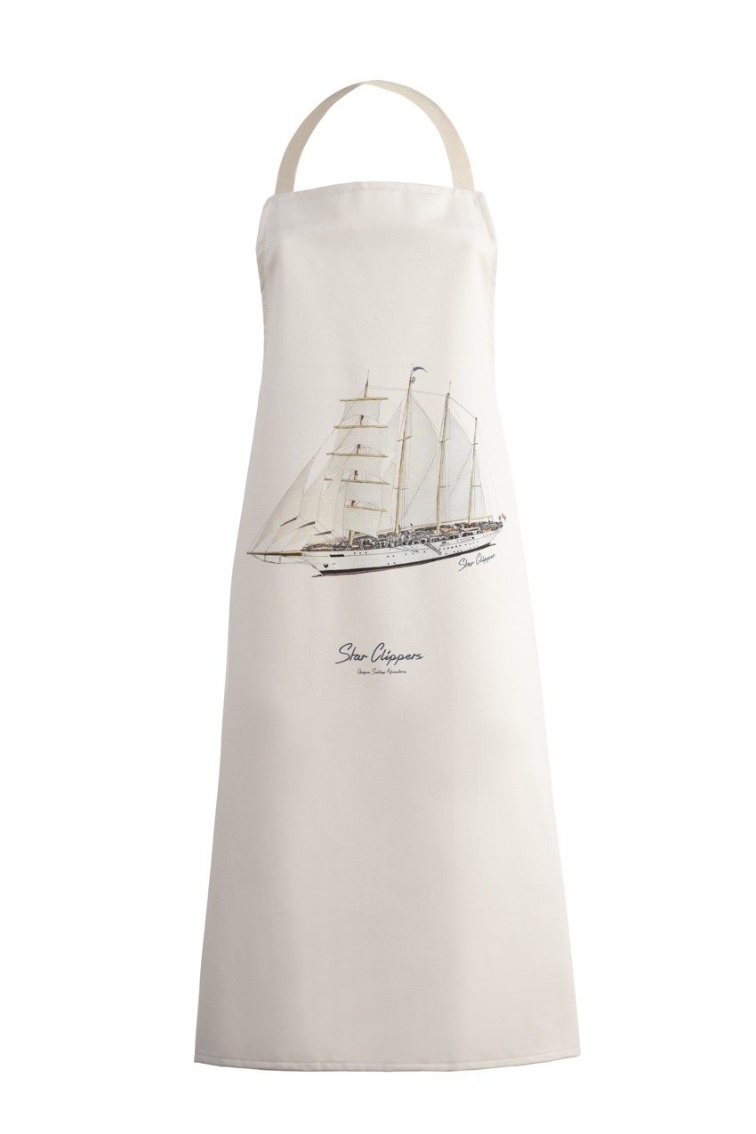Tablier de cuisine en coton, disponible avec les visuels de nos voiliers Star Clipper, Royal Clipper ou Star Flyer. Taille unique.